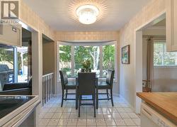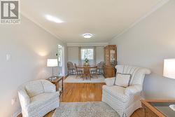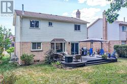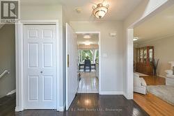 Welcome to this lovingly maintained, just shy of 1500 sq.ft. Above grade, 2-storey family home, nestled in a quiet and desirable West Ward neighbourhood of Orillia. Ideally located just a short walk from several local parks, this charming property sits on a beautifully manicured 49.21 x 109.9 lot, offering privacy, mature trees, and a tranquil outdoor setting. Step onto the inviting covered front porch and into a spacious foyer with a soaring ceiling that sets the tone for the bright and welcoming interior. The main floor features a generous living and dining room combination with gleaming hardwood floors, perfect for entertaining or relaxing with family. The updated galley kitchen includes a cozy breakfast nook that overlooks the fenced backyard and garden space. Adjacent, the family room offers engineered hardwood flooring and a warm gas fireplace, ideal for cozy evenings. A convenient 2-piece powder room completes the main level. Upstairs, the open staircase leads to the bedroom level, where the primary suite impresses with a walk-through layout featuring two sets of double closets and a private 3-piece ensuite with a shower. Two additional bedrooms with laminate flooring and a 4-piece main bath provide plenty of space for the whole family. The partially finished lower level offers a comfortable recreation room, plus a spacious utility/laundry/storage area with a rough-in for an additional bathroom ideal for future customization. Significant updates include a high-efficiency heat pump and furnace (2023), upgraded blown-in insulation, newer patio and front doors, and several updated windows (within the past five years). Enjoy outdoor living on the rear deck with a gas line for BBQ, surrounded by a private, treed backyard. An attached double garage and double paved driveway offer ample parking and storage. A wonderful opportunity to own a well-cared-for home in a peaceful, family-friendly neighbourhood. (id:27)