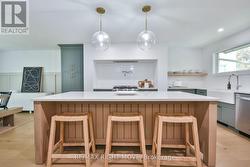 Welcome to 407 Bay Street, Orillia - located in one of the city's most desirable neighbourhoods. This stunning custom-built 5-bedroom, 3.5-bath, two-storey home showcases exceptional craftsmanship, modern design, and high-end finishes throughout. The main level offers an open-concept dining area and a gorgeous farmhouse-style kitchen featuring a custom oak island, quartz countertops, floating shelves, and a pot filler. The living room boasts a beautiful brick accent wall and a gas fireplace, complemented by an office, 2-piece bath, and a spacious laundry/mudroom with garage access and a walkout to the rear deck. Upstairs, you'll find three bedrooms, including a bright primary suite with a 3-piece ensuite, plus an additional 4-piece bath. The fully finished lower level features a large recreation room with a gas fireplace, wet bar/kitchenette, walkout to the backyard, two additional bedrooms, a 3-piece bath, fitness area, utility room, and storage. The backyard is perfect for family enjoyment, backing onto scenic recreational trails and featuring an in-ground pool with a newer liner and concrete surround. This home has been extensively updated with premium finishes - custom millwork, built-in cabinetry, ship lap details, cedar accents, stunning tile work, upgraded fixtures, and elegant brass hardware. Additional updates include a metal roof, new main and second level windows, composite decking, Regal railing and more. Located across the street from Lake Couchiching, water access from Fittons Rd or Borland St, just minutes to downtown, Couchiching Beach Park, boat launch, shopping and more. A truly remarkable home that must be seen in person to be appreciated. (id:27)