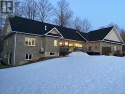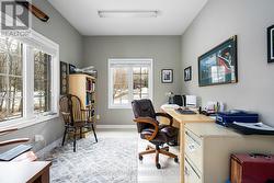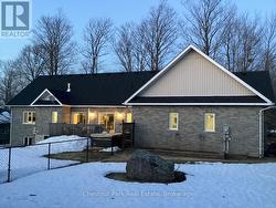 Tucked away on a picturesque, tree-lined half-acre lot in the desirable community of Moonstone, this stunningly renovated bungalow offers the perfect blend of modern elegance and country charm. With substantial renovations and upgrades since 2021, this move-in-ready home is an absolute showpiece. The main floor boasts soaring vaulted ceilings, an open-concept layout flooded with natural light, and in-floor radiant heating throughout for year-round comfort. The completely renovated kitchen is a chef's dream, seamlessly connecting to the dining area, where a beautiful gas fireplace sets the perfect ambiance. Step outside to the expansive deck with a hot tub and fully fenced yard, ideal for entertaining or unwinding under the stars. This home offers three spacious bedrooms on the main level, as well as a home office--an ideal setup for remote work. Additional updates include renovated bathrooms (main floor 2024, primary ensuite 2025), a new roof (2024), and a new heat pump (2025). The fully finished lower level is built for enjoyment, featuring a Rec Room, Bar, Bedroom, 3 pc. bathroom, with a walkout that offers potential for a separate basement suite entrance. Completing the home is an oversized, insulated three-car garage with in-floor radiant heating, perfect for extra storage or workshop space. Located just five minutes from St. Louis Moonstone Ski Hills, this incredible home offers four-season recreation at your doorstep. Don't miss this rare opportunity to own a beautifully designed retreat in one of the area's most sought-after locations! (id:27)