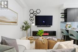 Just 4 Years New, This Beautiful Two-Level Townhome Offers A Thoughtfully Designed, Open-Concept Main Level That Maximizes Both Space And Flow. Vinyl Flooring Runs Throughout The Main Floor, Which Also Includes A Convenient Powder Room And A Large Closet. The Sleek, Modern Kitchen Seamlessly Connects To The Living Area, Creating A Bright And Functional Space Ideal For Both Everyday Living And Entertaining. The Living Room Is Warm And Inviting, And Features An Electric Fireplace. The Kitchen Features A Stylish Backsplash, Quartz Countertops, Stainless Steel Appliances, And A Peninsula With Additional Seating That Naturally Bridges The Kitchen And Living Room. A Walk-Out From The Kitchen Leads To A Cozy Private Balcony, The Perfect Spot To Enjoy Your Morning Coffee. The Lower Level Features Two Bedrooms With Above-Grade Windows, A 4-Piece Bathroom, And Convenient In-Suite Laundry. This Home Presents An Excellent Opportunity To Own A Modern Townhome In A Central Location, Just Minutes To All Amenities, Transit, Highway 401, And Nearby Running Paths! (id:27)
