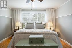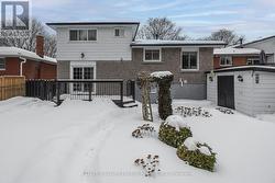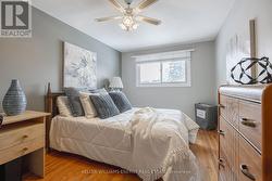 Welcome to this beautiful rarely offered 4-level sidesplit in the highly sought after Donevan neighbourhood. This home has been meticulously maintained and offers a functional layout with inviting living spaces and room for the whole family. It features 4 spacious bedrooms, 2 washrooms, a bright open main floor with rich hardwood floors and pot lights, an eat-in kitchen and a large living room with a cozy gas fireplace perfect for staying warm this winter. The flexible ground floor bedroom can easily be used as a den or home office and features a 2-piece en-suite, closet and walk-out to your large deck where you can enjoy your morning coffee this summer. Enjoy entertaining in your finished lower level rec room ideal for movie nights and family game night. This home has loads of storage with a walk-in linen closet on the upper floor, built-in cabinets in the lower level rec room and a large utility room with a crawl space. Direct access to the home from the garage adds everyday convenience.The private fully fenced backyard is perfect for entertaining, gardening or family bbqs. Close to great schools, parks, shopping, transit and is just minutes to Highway 401. (id:27)
