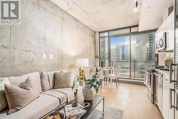 Welcome to Gotham, one of Ottawa's most striking and contemporary condominiums, designed by Lamb Development Corporation. This sophisticated studio suite combines sleek modern finishes with an unbeatable downtown location - perfect for professionals, investors, or anyone seeking a vibrant urban lifestyle. The unit offers a bright open-concept layout with floor-to-ceiling windows, hardwood flooring, and 9ft exposed concrete ceilings that create a modern, loft-inspired aesthetic. Step outside to your private balcony, perfect for relaxing with city views. Residents of Gotham enjoy premium amenities, including 24-hour concierge service, a stylish party room with full kitchen and outdoor terrace, BBQ area, and bike storage. Located in the heart of Centretown, Gotham places you steps from Lyon LRT Station, Parliament Hill, LeBreton Flats, and the Rideau Canal. Enjoy Ottawa's best cafés, restaurants, and shops within walking distance, along with excellent walk, bike, and transit scores. This well-managed building blends architectural style with urban convenience - offering the perfect balance between downtown energy and private retreat. Whether as a first home or investment, this studio delivers modern design, lasting value, and an unbeatable location in the heart of Ottawa. *426sqft + 43 sqft balcony (id:27)