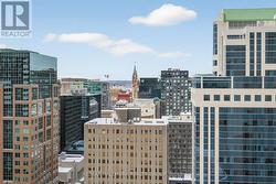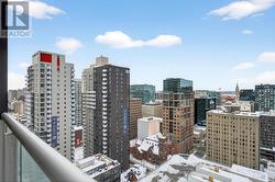 Welcome to The Surrey at Tribeca East! This beautifully maintained 1 Bedroom + Den condo offers 753 sq. ft. of bright, open-concept living space on the 21st floor, showcasing elevated city views and a smart, functional layout. This unit features a spacious primary bedroom, a versatile den ideal for a home office, and a modern kitchen/living/dining area designed for both everyday living and entertaining. The sleek kitchen is equipped with granite countertops, stainless steel appliances, and a moveable island, seamlessly connecting to the living space. Step onto your private balcony and take in the downtown skyline from above. Additional highlights include in-unit laundry and central air conditioning. Residents enjoy access to exceptional amenities, including a fitness centre, indoor pool, party room, rooftop terrace, and concierge service. Located in an unbeatable downtown setting - Farm Boy right next door and Parliament Hill, the Rideau Canal, LRT stations, shopping, and dining all within walking distance - you may not even need the one underground parking spot included. Ideal for professionals, downsizers, or investors seeking premium urban living at one of Ottawa's most desirable addresses. Condo fees include: Heat, Water, A/C, Building Insurance, Garbage Removal, Reserve Fund Allocation, and Building Maintenance. (id:27)