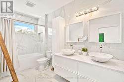 Welcome to this exquisite executive residence, ideally located in the heart of Westboro - just steps from trendy cafes, boutique shops, lush parks, top-rated schools, and moments from Highway 417 for effortless commuting. Built in 2021, this modern home offers a seamless blend of luxury and functionality across three well-appointed levels. The inviting front foyer welcomes you with a generous closet and direct access to the heated garage - perfect for Ottawa winters. Step into the main living area where 9-foot ceilings, sleek tile flooring, and a stylish powder room set the tone for contemporary living. The chef-inspired kitchen features stainless steel appliances, a striking backsplash, and a waterfall-edge granite island that anchors the open-concept layout. It's an entertainers dream, flowing effortlessly into the sun-drenched dining space and airy living room with patio doors that open onto a private, south-facing backyard - ideal for indoor-outdoor living. Upstairs, the primary suite is a luxurious retreat, showcasing warm maple hardwood floors, a walk-in closet, and a spa-like ensuite bathroom. Two generously sized secondary bedrooms, one with cheater access to the full bathroom, and a convenient second-floor laundry room complete this level. The lower level is framed, insulated, and comes with drywall ready for installation - offering an exciting opportunity to customize additional living space. Whether you envision a legal Secondary Dwelling Unit (SDU) for added income or a private suite for multi-generational living, the possibilities are endless. This is modern Westboro living at its finest - schedule your private showing today! (id:27)