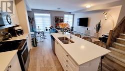 Built in 2021, this stunning 3-storey end-unit townhome (plus basement) offers 1,500 sq. ft. of elegant living space with high-end finishes and thoughtful upgrades throughout - including hardwood floors, stainless steel appliances, quartz countertops in the kitchen and bathrooms, and Samsung washer and dryer. The ground floor provides easy access to a deep garage with space for one vehicle and extra storage or hobby use. The driveway accommodates two additional vehicles. The main floor features an open-concept living and dining area filled with natural light from large windows and a spacious balcony perfect for relaxing, BBQs, or enjoying your morning coffee. Upstairs, you'll find two bedrooms, including a master suite with a walk-in closet and a luxurious ensuite bathroom with a spacious shower. The second bedroom is currently set up as a bright and functional home office. The basement offers plenty of storage space, and the laundry room is conveniently located on the upper floor. Located in a quiet, family-friendly neighbourhood, this home is just a short walk from schools, parks, grocery stores, and bus stops - everything you need is right at your doorstep. Note: Furniture can be included with the sale if desired. *For Additional Property Details Click The Brochure Icon Below* (id:27)