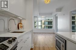 Exceptional Westboro condo nestled within one of the area's most desirable buildings, where the city's trendiest conveniences await just outside your door. Highly regarded neighbourhood known for its welcoming and energetic atmosphere, with endless cafés, restaurants, and boutiques, as well as a strong connection to nature-just minutes from the Trans-Canada Trail and the newly revitalized Westboro Beach. Unit boasts bright contemporary style and is well upgraded from top to bottom. Light engineered hardwood floors, fresh white paint, modern lighting, and minimalist window coverings create a perfectly timeless design. An open-concept layout stretches along a long, airy floorplan anchored by huge windows that flood the home with natural light. The beautiful white kitchen features a centre island with casual seating, quartz countertops, under-cabinet lighting, extended flat-panel cabinetry to the ceiling, sleek stainless-steel appliances, and a polished backsplash. Flowing into a cozy dining area and then to a sunlit living room with access to a covered balcony. Rounding out the main area are a convenient powder room and discreetly tucked-away in-unit laundry. Private primary suite where floor-to-ceiling windows create an inviting retreat complete with a large double-sided walk-in closet featuring a custom organization system, and a full ensuite bathroom with an oversized glass-panelled shower. Unit includes a heated underground parking space B3 and adjacent storage locker B156. The building itself offers an impressive array of amenities: a fitness centre, theatre room, meeting and games room, pet wash station, bike lockers, and a stunning rooftop terrace with dining areas, lounge seating, BBQs, and a hot tub. A strong, friendly in-house community hosts regular social events, adding to the warm, connected lifestyle this building is known for. Commuting is effortless with nearby transit, the future LRT stop, and proximity to Tunney's Pasture. (id:27)