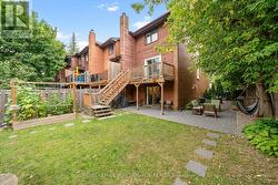 Urban Oasis in Woodpark - Spacious End Unit Townhome w/Walkout! Set on a unique wide lot, this bright and spacious end-unit townhome boasts a professionally landscaped side and west-facing backyard (2021) that feels like a private retreat featuring stone patios, perennial gardens, raised vegetable beds, mature trees, and open views with no direct rear neighbours. A covered patio, storage shed, and generous outdoor space create an inviting setting for relaxation, gardening, or play. Inside, sunlight pours in from three directions, enhancing the open layout. Hardwood flooring spans both the main and upper levels. The sun-filled kitchen features stainless steel appliances and a peninsula breakfast bar, while the dining and living room is impressively spacious, complete with a wood-burning fireplace and patio doors to the deck and yard. Upstairs are 3 well-sized bedrooms, including a primary with wall-to-wall closets and cheater access to a refreshed 4-piece bath. The walkout lower level is a standout feature, offering exceptional flexibility as a family room, home office, studio, or guest space. This level also includes double doors to the backyard, a two-piece bath, a mudroom with garage access, laundry, and ample storage.Experience the perfect balance of city convenience and natural tranquility in Woodpark, one of Ottawa's most connected and desirable neighbourhoods. Walk to shops, restaurants, schools, and Carlingwood Shopping Centre, or enjoy quick access to the Ottawa River pathways, Westboro Farmer's Market, Britannia Beach, and Mud Lake. Transit is steps away with bus routes and future LRT stations nearby, plus Highway 417 just minutes from your door. This home offers urban convenience, modern comfort, and flexible living in a peaceful setting. (id:7525)