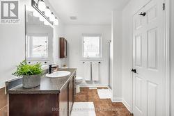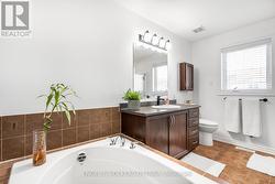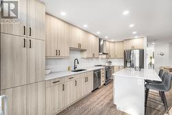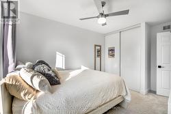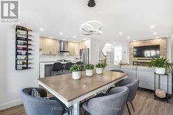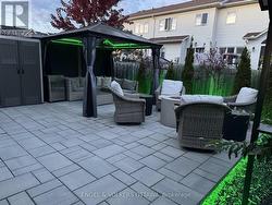 This exceptional townhome blends modern elegance with everyday functionality, delivering a truly turn-key living experience. A generous foyer welcomes you into a bright, open-concept main level featuring updated flooring, modern baseboards, and LED pot lighting throughout, including the garage. The living room, anchored by a beautifully appointed electric fireplace with custom stonework, flows effortlessly into the dining area and a chef-inspired kitchen showcasing white quartz countertops, a versatile centre island, and a chic coffee bar. A refreshed main floor powder room adds comfort and convenience.From the kitchen, step into a private backyard retreat designed for both relaxation and entertaining, featuring patio stones, added exterior power, a gazebo, and a soothing hot tub. A graceful curved staircase with enhanced lighting leads to the upper level, where three inviting bedrooms await, including a luxurious primary suite with a walk-in closet and a spacious 4-piece ensuite complete with a deep soaker tub.The finished lower level continues the home's refined feel with plush carpeting, a stylish recreation room, a modern bathroom, a dedicated storage room, and an updated laundry area with contemporary lighting. Major mechanical upgrades further enhance peace of mind, while thoughtful improvements throughout reflect true pride of ownership. Beautifully landscaped front and back and ideally positioned across from a park and green space, and just steps to a nearby elementary school and daycare, this meticulously maintained residence offers comfort, sophistication, and confidence in every detail. (id:27)