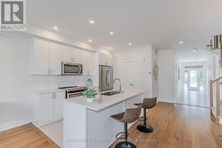 This beautifully maintained executive end unit townhome offers over 2,160 sq ft of thoughtfully designed living space. The main floor features hardwood flooring, a welcoming foyer, and an open-concept living and dining area. The upgraded white kitchen boasts quartz countertops, a walk-in pantry, an oversized island with a breakfast bar, and stainless steel appliances. Upstairs, the spacious primary bedroom includes a luxurious ensuite with quartz counters and a glass-tiled shower. You'll also find a convenient second-floor laundry room, a 4-piece main bathroom, a linen closet, and two generously sized bedrooms with large windows providing ample natural light. The lower level features a spacious family room with a cozy gas fireplace and an abundance of natural light. There is also a rough-in 3-piece bathroom and a mechanical room with ample storage space. Located within walking distance to schools, shopping, restaurants, daycare, and other amenities. (id:27)