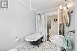 Century charmer only minutes walk to shops, restaurants, parks, and other great amenities in the historic town of Perth. Fresh and inviting neutral décor in this updated 2 1/2 storey with 2 bedrooms, 2.5 bathrooms, extra main floor living space, mudroom, gorgeous yard - nothing to do but move in and relax and enjoy. Light and bright top to bottom - large windows fill this home with natural light. Cozy up by the corner fireplace in the comfy living room. Enjoy large family gatherings or more intimate dinners in the entertaining sized, versatile dining room. Loads of cabinets in the efficient white kitchen with breakfast bar. Bonus main floor room at the end of the kitchen overlooking the backyard perennial gardens is used as a breakfast room/casual dining by the current owners. It is large enough to be a den/family room/tv room. Handy main floor powder room and laundry space off the mudroom by the back deck - new washer/dryer in 2023. Beautiful and private revamped yard - organic gardens, stone patio and walkways with separate BBQ patio, apple trees, roses, roses, roses. The primary bedroom offers a full ensuite with jet tub. Plus another full bath on the second level that is perfect for guests. Walk-up, insulated attic used for storage but could be developed for additional living space. So many improvements - list available. Whether downsizing or starting out in your first home you are sure to appreciate the quality improvements and the owners' attention to detail. (id:27)