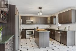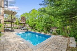 Welcome to this stunning 5+1 bedroom, 4-bathroom home nestled in one of Pickering's most sought-after neighborhoods, backing onto a serene ravine lot. With over 3,300 sq. ft. of beautifully designed living space plus a fully finished walk-out basement, this home offers a perfect blend of elegance, functionality, and natural beauty. The heart of the home is the chef-inspired kitchen, featuring stainless steel appliances, a large island, ample cabinetry, and a butlers pantry that connects to the formal dining room, ideal for hosting. The bright breakfast area opens to a covered deck with picturesque ravine views, perfect for morning coffee or family BBQ. The main floor is rich in character with hardwood flooring, crown molding, and wainscoting throughout. It includes a formal living room, a spacious family room with a gas fireplace, a private office (or optional 6th bedroom), and a convenient laundry/mudroom with direct access to the double-car garage and a walkout to the backyard. Upstairs, the expansive primary suite is a retreat of its own, featuring a sun-filled layout, a generous walk-in closet, and a spa-like 5-piece ensuite with double sinks, a soaker tub, and a separate shower. Four additional well-sized bedrooms and a recently updated 4-piece bathroom complete the upper level. The finished walk-out basement is an entertainers dream and offers excellent in-law suite potential. It includes a cozy living space with a wood-burning fireplace, a built-in bar with a sink and bar fridge, pot lights, large windows, & a 2-piece bathroom. Step outside to your private backyard oasis featuring an in-ground pool (installed in 2018), elegant stonework (2018), and a charming gazebo perfect for year-round enjoyment. With mature trees and unobstructed ravine views, this outdoor space offers both beauty and privacy. This exceptional home is perfect for growing families or anyone who loves to entertain! (id:27)