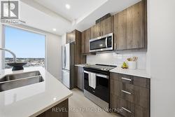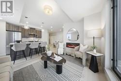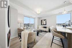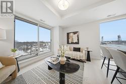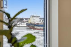 Welcome to Unit 605 in Port Colborne-an elevated condo lifestyle with standout views and a fully upgraded, contemporary interior. This bright 2-bedroom, 2-bathroom suite offers an open-concept layout with wide-plank flooring, oversized windows, and a crisp modern palette throughout.The sleek kitchen is designed for both style and function, featuring quartz countertops, stainless steel appliances, modern cabinetry, and a large island with seating-ideal for entertaining or everyday living. The sun-filled living and dining area flows effortlessly from the kitchen and is anchored by a cozy fireplace, creating the perfect space to relax and unwind.Step out to your private balcony and take in sweeping views over the city and waterfront. The spacious primary bedroom is a serene retreat with a beautifully finished ensuite, while the second bedroom is perfect for guests, a home office, or family. Both bathrooms feature spa-inspired finishes with quartz-topped vanities, contemporary fixtures, and heated floors for added comfort.Additional highlights include in-suite laundry and access to great building amenities, including a fitness room. Located in the heart of Port Colborne, you're just moments from shops, restaurants, and the waterfront. (id:27)