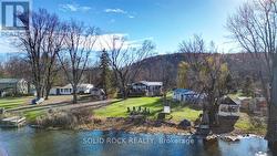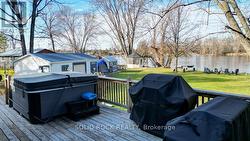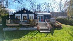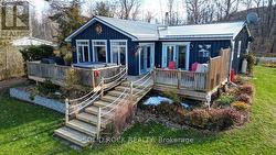 Welcome to this exceptional waterfront property, offering the perfect blend of comfort, charm, and year-round relaxation. This well maintained 2-bedroom, 2-bath home sits on just over .5 acre landscaped lot with breathtaking sunset views and direct access to the water, allowing you to enjoy peaceful living and fishing right from your own dock. Step inside to an inviting open-concept kitchen, dining, and living area designed for effortless flow and natural light. The kitchen features stainless steel appliances, abundant cabinetry, and generous counter space. Striking wood beams add warmth and character, while porcelain flooring runs throughout the main living area for durability and style. A cozy wood stove creates the perfect ambiance on cooler evenings. The spacious primary bedroom boasts a private 3-piece ensuite and direct patio access, making it an ideal space for quiet mornings or enjoying fresh air before bed. The second bedroom is conveniently located next to main bathroom providing function and practicality which includes the laundry facilities, adding to the home's thoughtful layout. A practical mudroom provides additional organization and storage. Outdoor living is truly exceptional here. Relax and unwind on the deck, complete with a hot tub, or gather around the fire pit for evenings under the stars. The property also includes a charming screened-in gazebo, perfect for bug-free summer nights, as well as a workshop and a delightful she shed-ideal for hobbies, storage, or creative space. The beautifully landscaped grounds enhance the home's tranquil atmosphere, with open sightlines to the water and incredible sunset views that never gets old. Whether you're looking for a year-round residence or a peaceful getaway, this property offers unmatched comfort, charm, and riverside living. Don't miss the opportunity to make this stunning waterfront home your own. (id:27)