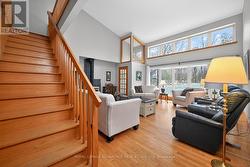Discover the ultimate lifestyle balance at this exceptional property, which seamlessly blends a private country setting with the convenient access of being just moments from town. This home is perfect for those seeking tranquility without sacrificing amenities.Step inside the inviting, open-concept living area, immediately greeted by the warmth of hardwood floors that flow throughout the main level. The soaring ceilings and natural light enhance the spacious feel. For those cozy evenings, the ambiance and heat generated by the beautiful propane stove will be your favorite gathering spot. The bright, open-concept loft area overlooks the main living space, making it an ideal location for an integrated home office, den, or extra lounge area that stays connected to the heart of the home.The home also features three good-sized bedrooms, ensuring comfort for everyone. The primary bedroom offers plenty of space, complete with a dedicated ensuite with soaker tub and separate shower. Outside, the property is beautifully framed by mature trees, ensuring excellent privacy in every season. Looking ahead to warmer days, your private yard paradise awaits! The impressive 18' x 36' inground pool is the centerpiece, recently upgraded with a brand new liner and equipped with a propane heater-allowing you to extend the swimming season from early spring into the fall. Practical features enhance your daily life: the attached two-car garage offering plenty of storage for vehicles and seasonal items. Or you can utilize the additional 2 sheds on the property and a dedicated pool shed. Don't miss the opportunity to own this unique blend of cozy country charm close to town conveniences. (id:7525)
