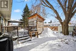 Bright and inviting split-level home located in a quiet, family-friendly Embrun neighbourhood offering easy access to the city and close proximity to schools, parks, and grocery stores. This well-designed home features a charming closed-in front porch, a sun-filled open-concept living and dining area, and a kitchen with table space and direct access to a deck and fully fenced backyard. The main floor includes a laundry room, 2-piece bathroom, and interior access to an insulated double attached garage. Just five steps up are three bedrooms, including a spacious primary suite with a 3-piece ensuite and walk-in closet, plus a full family bathroom. The fully finished basement offers a bright bedroom, a den ideal for a home office, a generous family room with a cozy gas fireplace, and a built-in bar area perfect for entertaining. The backyard is designed for year-round enjoyment with a deck and gazebo, firepit area, space for children's play equipment, and a rustic shed housing a Scandinavian-style log sauna, a rare and unique feature. A well-laid-out home with abundant natural light, versatile living spaces, an insulated double attached garage, a closed-in front porch, and a Scandinavian log sauna, all in a quiet neighbourhood with quick access to the city-this is a rare opportunity in a desirable Embrun location. (40 amp Generlink hook up installed on the house meter in October of 2024, Gutter Guards 2023, Fence West Yard (2023), Sauna (2020), Stone Patios (2023), Roof (2018)). *Please note that the Sauna Stove is excluded. (id:27)