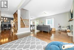 Welcome to 48 Station Trail, a fully renovated gem backing onto a ravine biking paths. This stunning 4-bedroom, 3-bathroom detached home is nestled on a quiet street near the entrance to Russells most desirable neighbourhood. This beautifully updated home offers the perfect blend of comfort, style, and privacy. Set on a premium ravine lot with no rear neighbours, the property boasts an above-ground pool, a large backyard deck, and tranquil views you'll enjoy year-round. Step inside to discover a thoughtfully renovated interior featuring 9' ceilings on the main level, hardwood flooring throughout both the main and upper levels, and a practical main floor office, ideal for working from home. The heart of the home is a stunning, completely redesigned kitchen with double waterfall quartz countertops, ample cabinetry, and included stainless steel appliances, all opening seamlessly to the dining and living areas, perfect for both everyday living and entertaining. Upstairs, you'll find four spacious bedrooms, a convenient 2nd-floor laundry room, and a brand new ensuite bathroom complete with a standalone soaker tub, glass shower, and modern finishes. The fully finished basement adds even more living space, offering a large rec room and plenty of organized storage. Additional exterior updates include a new driveway and interlock walkway. Located just minutes from schools, parks, and local amenities, this turn-key home has been renovated from top to bottom, all you have to do is move in. Don't miss your chance to own this exceptional home in a quiet, well-connected community just 20 minutes to Ottawa! (id:27)