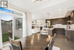 Stylish, spacious, and perfectly positioned, this impressive two-storey corner-lot home is tucked into one of the area's most sought-after, family-friendly neighborhoods. Surrounded by lush hedges and a sleek PVC fence, it offers enhanced privacy with standout curb appeal. Inside, discover 5 bedrooms plus a main-floor den/office that can easily be converted to an additional bedroom, and 4 bathrooms, offering generous space for growing families. The open-concept layout is filled with natural light and thoughtful design, featuring a front office, formal dining room, and a striking double-sided fireplace with a warm oak mantel connecting the main living areas. The chef-inspired kitchen is the heart of the home, complete with quartz countertops, a stylish backsplash, a large island, and a walk-in pantry. A bright dining nook with vaulted ceilings and backyard access adds charm and versatility, all set atop elegant engineered hardwood flooring. Upstairs, four spacious bedrooms and two full bathrooms provide comfort and convenience for the whole family. The primary suite is a luxurious escape with a spa-like 5-piece ensuite and walk-in closet. The fully finished basement adds even more living space with a large family room, an extra bedroom, and a full bathroom, ideal for guests, teens, or entertaining. Step outside to your private backyard retreat with a shed and space to unwind. With parks, scenic walking trails, and everyday amenities just moments away, this home blends comfort, privacy, and location in one irresistible package. (id:27)