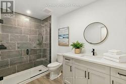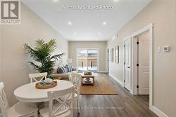 Discover this stunning Southampton townhome, perfectly positioned along the scenic Saugeen River, it's just a short walk to vibrant downtown shops, restaurants, the beach & breathtaking sunsets on Lake Huron. Spanning over 2,000 sq ft of finished living space across three levels (two above grade plus a full finished basement), the home features a bedroom and full bathroom on each floor for ultimate convenience and privacy. Inside, you'll appreciate the tasteful finishes, including quality cabinetry, solid surface counters, luxury vinyl plank flooring, tiled bath/shower surrounds, LED lighting, and more. The main level showcases an open-concept living/dining area with access to your south facing deck, a U-shaped kitchen loaded with ample cabinetry and included appliances, a bright main-floor bedroom and a 4-piece bathroom. Upstairs, a versatile loft/sitting room leads to the primary bedroom suite, displaying river views through the dormer window, a 3-piece ensuite, and a large walk-in closet. The fully finished basement offers guest-friendly space with a third bedroom, another 4-piece bathroom, and a generous sized recreation room. Additional highlights include efficient natural gas furnace, central air conditioning, laundry hookups ready for your washer/dryer, concrete driveway, single attached garage, and low maintenance curb appeal with the stone-brick exterior. Built just a few years ago, this turn-key townhome is ready for you to move right in and add your decorative touch. Waterfront travelled road between. Photos with furniture and decor are virtually staged. (id:27)