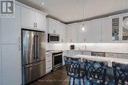 Experience the perfect blend of modern style and functional design in this impeccably maintained semi-detached home. The main floor is designed for effortless living, featuring a bright white kitchen with a central island breakfast bar, a lovely separate dining area, and a spacious living room that walks out to your private deck and fenced yard. With two bedrooms on the main level-including the primary-plus a four-piece bath, a convenient powder room, and main floor laundry, everything you need is right at your fingertips. The versatility continues downstairs in the fully finished basement, where you'll find a large, cozy family room anchored by a gas fireplace, two additional bedrooms, a three-piece bath, and ample storage space. Whether you are hosting guests or looking for the perfect home office setup, this layout offers incredible flexibility. Located just minutes from the trails, sandy beaches, and local charm of Port Elgin, this home is the ideal backdrop for your next chapter. Reach out today to book a private tour! (id:27)
