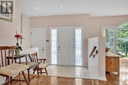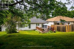 Nestled on a quiet dead-end street in the highly sought-after Village of Lakefield, this bright and versatile home offers the perfect blend of comfort, space, and natural beauty. Just a short drive from Lakefield College School and within walking distance to charming local shops, scenic trails, and the picturesque Trent-Severn Waterway, the location is truly exceptional.The open-concept main floor is filled with natural light from large, picturesque windows. The living room, dining area, and kitchen flow seamlessly together, creating an inviting space ideal for everyday living and effortless entertaining. Step directly from the dining area onto a spacious deck - brand new as of July 2025 - perfect for summer gatherings or peaceful outdoor relaxation.Upstairs, you'll find two comfortable bedrooms. The lower level offers incredible flexibility, featuring a generous recreation room and two additional bright, spacious bedrooms - ideal for teens, guests, or a home office setup.The large, private lot is surrounded by mature trees, providing a tranquil setting for gardening, family play, or simply unwinding in nature. Additional highlights include a backup generator for added peace of mind, a large storage loft above the garage for seasonal items or hobbies, and brand-new air conditioning installed in July 2025. Photos on the deck are not updated yet. (id:27)