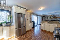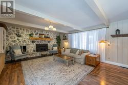 Tucked well back from the road this classic 1970's brick ranch offers nearly 2 acres of privacy in the heart of the highly sought-after Marchmont/Bass Lake community. With over 2,700 sq. ft. of thoughtfully designed main floor living, this home was built for families who value space, connection, & comfort. From the moment you arrive, the covered arched entry & private unistone courtyard set the tone. Step inside to bright, welcoming foyers at both the front & rear of the home - practical for busy family life & ideal for entertaining. A convenient 2-pc powder rm & walk-in pantry/storage closet add everyday functionality. At the centre of the home, the open-concept kitchen, dining, & family rooms create a natural gathering place. The kitchen offers generous cabinetry, granite counters, stainless appliances, & ample prep space, all flowing seamlessly into the dining area & family room. The woodstove anchors the space, adding warmth & charm, while large windows draw in natural light. When it's time to unwind, the separate living room offers a quieter retreat, complete with oversized windows front & back & a cozy gas fireplace. The layout thoughtfully separates the living spaces from the private bedroom wing featuring 4 spacious bedrooms, incl. a Primary suite tucked at the rear of the home w/a walk-through closet, private 4-pc ensuite & walkout to unistone patio. A fully renovated 5-pc bathrm w/dble vanity, & main floor laundry add convenience where families need it most. Full basement under 1/2 the home w/Rec.rm. w/Gas FP, Storage/Utility rm. w/direct walk up access to the side yard. Backing onto township-owned open space, the yard feels endless; perfect for kids & pets! Detached 35'5" x 27' oversized double garage (with newly built roof) provides exceptional storage and workspace flexibility. 2 Gas Furnaces & central air units recently replaced. Minutes to amenities, in an excellent school district, & within one of Severn's most desirable areas. (id:27)