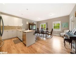 Welcome to this bright and beautifully maintained three-storey freehold townhouse offering approximately1,880 sq ft of finished living space only ten minutes north of Orillia. Tucked on a generous lot that backs onto environmentally protected land, the home delivers peaceful views while keeping you close to everyday conveniences. Easy access to Highway 11 for quick north-or-south commuting, shopping, parks, schools, Cumberland Beach and the local public boat launch, plus easy strolls to the shores of Lake Couchiching. Inside, the ground level greets you with a versatile family or recreation room, a handy two-piece washroom, full size laundry, and direct access to the heated single garage. An open-concept second floor is perfect for gathering, featuring a contemporary eat-in kitchen with breakfast bar that flows into a spacious living area and out to a 20-foot balcony overlooking the backyard. A second powder room completes this level. Upstairs, the primary suite enjoys abundant natural light, 'his-and-hers' closets, and a fresh four-piece ensuite, while two additional bedrooms share a four-piece family bath. With parking for up to four vehicles, proximity to the lake, and move-in-ready interiors, this property balances lifestyle and practicality - ideal for families, first-time buyers, or anyone seeking a low-maintenance home base in the heart of Simcoe County.