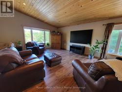 You are going to want to rent this place, especially if you are wanting or needing a great shop to work out of, from where you live. The shop, which is located under the apartment, 35 x 40 ft with laundry and 2 pc bathroom. The 1497 sq ft apartment is over the shop and is beautifully appointed and has access to, and view of the Severn River. It offers open concept kitchen, living and dining areas, with pine cathedral ceilings, making it bright and spacious. The kitchen features stainless steel appliances and a built in microwave. There are 2 large bedrooms with closets and a 3 piece bathroom with laundry. The entire apartment is lovely and so well done. Heating is propane forced air and central air for cooling. The Tenant will be required to pay the propane bill and half of the hydro bill (id:7525)
