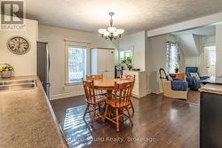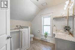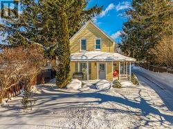 Charming 1.5-Storey Home in the Heart of Wiarton. This inviting property features two spacious bedrooms and two bathrooms, offering a cozy yet highly functional layout. Ideally located close to local amenities, it combines convenience with small-town charm. A standout feature is the large garage, providing ample storage and workspace, complete with a loft above-perfect for a studio, home office, or guest area. Recent upgrades include a new wall furnace, stove, and a beautifully renovated primary bathroom, adding modern comfort and style. Ideal for first-time buyers, retirees, or anyone seeking a peaceful lifestyle without sacrificing convenience. (id:27)