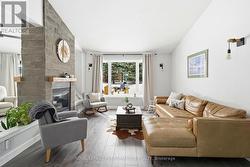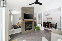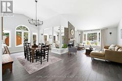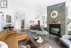 This uniquely designed and stylish 3-bedroom home with garage sits proudly on a rare double lot and delivers effortless one-level living. Built slab-on-grade, it's ideal for buyers seeking a low-maintenance, mobility-friendly lifestyle without compromising on design or comfort. Step inside to a spacious, light-filled open concept layout where the living and dining areas soar with vaulted ceilings. Radiant heated floors keep things cozy, while a striking two-sided gas fireplace with a modern stone surround adds warmth and flair. The custom eat-in kitchen (2015) is both functional and refined, featuring quartz countertops, centre island, backsplash, and stainless steel appliances. The primary bedroom offers a private retreat with a 3-piece ensuite highlighted by a charming clawfoot soaker tub. Two additional well-sized bedrooms provide flexibility for family, guests, or a home office. A 3-piece guest bathroom with shower completes the interior. Outside, the backyard is designed for entertaining and relaxing, complete with a large interlocking patio, stonewall garden, fire pit, and storage shed. Additional highlights include a dedicated laundry room, central air conditioning, Generac generator, ICF Blue Max construction, tankless hot water heater (2022), washer and dryer (2023), roof shingles (2015), and extensive updates to paint, trim, and flooring. Other notables: Garage door 2025, light fixtures, washroom vanity, garden / storage shed refurbished Gutter guards, landscaped gardens, and an interlocked driveway round out the package. Ideally located close to recreation and everyday amenities, this home blends modern comfort, smart upgrades, and standout design-an exceptional opportunity on a truly impressive lot. Parks of the St. Lawrence, golf, schools, church and other amenities nearby. 10 min to Cornwall. Allow 24 hour irrevocable on offers. (id:27)