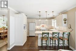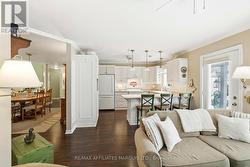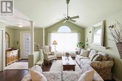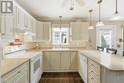Welcome to 47 Barnhart Drive in the quaint Village of Long Sault. This beautifully maintained slab-on-grade home is the perfect opportunity for those looking to downsize or enjoy the convenience of single level living. Offering 1,360 sq ft, the home features a bright, functional layout filled with natural light and evident pride of ownership throughout. Nestled in a quiet residential neighbourhood, this property offers comfort, simplicity, and ease of living. Upon entering, you are welcomed into an inviting living room highlighted by cathedral ceilings that enhance the sense of space and light. The adjoining dining area provides an ideal setting for hosting family gatherings or entertaining guests. For more relaxed evenings, the cozy sitting room with a fireplace is located just off the kitchen, creating a warm and comfortable space to unwind. Patio doors lead directly to the backyard where you will find a large pergola overlooking a private, fully fenced and beautifully landscaped yard. Whether enjoying morning coffee, summer barbecues, or tending to your garden, this outdoor space is both peaceful and practical, complete with a garden shed for additional storage. Additional features include in-floor radiant heat for consistent year round comfort, ductless air conditioning, and an attached garage. A convenient workshop and utility room located off the garage includes a shower and wash tub, offering a thoughtful bonus space ideal for hobbies. If you are seeking low maintenance living in a welcoming community, 47 Barnhart Drive is ready to welcome you home. Click on the Multi-Media link for virtual tour & floor plan. The Seller requires 24 hour Irrevocable on all Offers. (id:27)