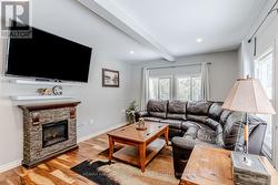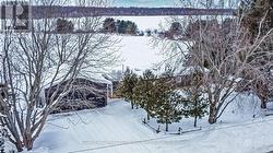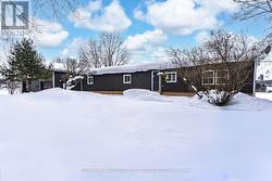 BUNGALOW WITH AN INSULATED DETACHED SHOP, UPDATED INTERIOR, & A PRIVATE 150 X 100 FT LOT! Drive down the country road and the first thing you notice is the striking 30 x 30 ft shop, followed by a charming bungalow, both finished in a sharp black exterior and framed by mature trees that give the property a true sense of privacy. Set on a treed lot with beautiful views and no immediate side neighbours, the setting feels intentionally set apart from the moment you arrive. A wide driveway offers loads of parking for vehicles, trailers, and guests, and the detached shop adds serious capability with hydro, 12+ foot ceilings, 100-amp service, and room for 4 more cars. The main living space feels open and connected, with a kitchen that's easy to gather around, featuring grey shaker cabinetry, stainless steel appliances, a breakfast bar, and wood countertops. No carpet underfoot, just a clean, low-maintenance feel throughout the home, including two cozy main-floor bedrooms served by a 4-piece bathroom. A large mudroom keeps boots, coats, and seasonal gear in check, and the updated main-floor laundry adds open shelving storage with a stacked washer and dryer. Downstairs, the finished basement offers a separate entrance and added flexibility, with a spacious third bedroom, a rec room warmed by a propane fireplace, a nearby powder room, and updated flooring and ceilings. Out back, a large deck invites long afternoons and late nights, the hot tub is included for year-round downtime, and a shed keeps the extras tucked away. When you feel like getting out, Victoria Harbour amenities are just minutes away, and Midland is only 10 minutes from home for groceries, dining, and healthcare, with Georgian Bay marinas, boat launches, waterfront parks, and trail systems close enough for spontaneous plans. (id:27)