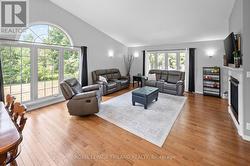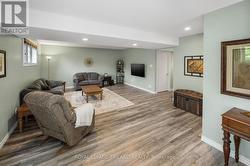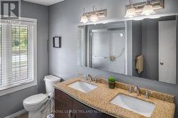 This is the one! Just 10 minutes from London, this stunning acreage with Wallace Creek running through it features a beautiful 4 bedroom raised bungalow with an oversized garage that easily fits two large pickup trucks, plus outdoor parking for an RV, 45ft trailer, and more. Blending modern upgrades, thoughtful design, and expansive living, its amazing inside and out. The home is warm and inviting with vaulted ceilings, open-concept layout, oversized windows, and hickory hardwood floors. A dual sided gas fireplace connects the great room and gourmet kitchen, which boasts a 12 ft quartz island, abundant cabinetry, and casual dining. Patio doors open to a large two tier deck and private yard, ideal for seamless indoor / outdoor living. All bedrooms fit king beds and include closet organizers. The main floor features two bedrooms, including a primary suite with two walk-ins and a spa like bath with double sinks and walk-in shower. Laundry/mud room and powder room complete the floor for easy one level living. The fully finished lower level offers a huge family room, two more bedrooms, full bath with tub/shower/double sinks, and a versatile workshop (pre-wired and plumbed for second kitchen to easily convert for an in-law suite). Direct stairs connect to the oversized insulated garage, perfect for car enthusiasts or hobbyists. Meticulously maintained with a new roof (2016), furnace, AC, and UV air disinfectant system (2017), ultraviolet disinfectant system for water, plus updated doors, custom lighting, and modern finishes. Central vac, gas BBQ line, two sheds, and negotiable zero-turn mower and snowblower add convenience. The sprawling lot offers privacy and mature landscaping, with low maintenance perennial gardens and a peaceful creek that attracts herons, deer, turtles, foxes, and more, your own private retreat. Just 3 minutes to Hwy 401 and under 30 minutes to Ingersoll, Dorchester, St. Thomas, and Aylmer, this exceptional home wont last. (id:27)