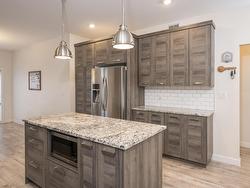 This 2017 open concept 1+2 bedroom bi-level + 3 bathrooms. Attached garage all granite + stainless kitchen with island + dining room onto patio doors to deck with fenced yard, all bathrooms granite top vanity... luxury finished throughout. Primary bedroom with walk-in closet + ensuite, air conditioning high ceilings in lower level. Rec room could put a 4th bedroom. Great location, close to shopping + parks, schools...