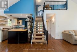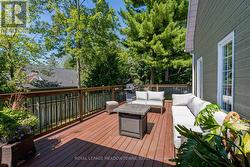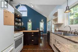 Experience relaxed lakeside living in this beautifully maintained three-bedroom home that pairs contemporary style with an easygoing coastal vibe. With peaceful lake views and eye-catching curb appeal, it's perfectly suited as either a full-time residence or a weekend getaway designed for comfort and connection. The bright, open-concept main level features dramatic cathedral ceilings, warm hardwood flooring, and large windows that fill the space with natural light. A charming front sitting area offers a warm welcome, while the well-equipped kitchen---highlighted by a custom live-edge dining table---opens effortlessly to a secluded side yard, perfect for outdoor dining and summer relaxation. French doors extend the living space to a spacious composite deck complete with a hard-top gazebo and built-in gas fireplace, creating an inviting setting for entertaining in any season. Upstairs, the airy loft-style primary suite provides a peaceful retreat with its own private ensuite and stunning views over the lake. The lower level offers added flexibility with a separate entrance and walk-out patio, an expansive recreation room, a third bedroom or home office, and a generous laundry and storage area. Located just a short stroll from the sandy shores of Woodland Beach and Edmore Beach, this property also includes ample private parking, a Generac whole-home generator, high-speed internet, and convenient garbage pickup-delivering effortless, worry-free coastal living. (id:27)