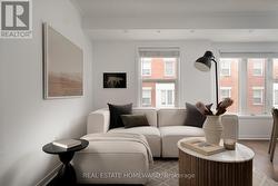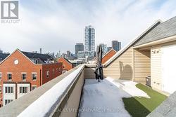Welcome to this rare CORNER townhome in the heart of Riverside, offering extra windows, exceptional natural light, and clear southwest views of the CN Tower. Spanning approximately 925 square feet, this 2-bedroom, 2-bathroom home is designed for comfortable, functional living. The open-concept main floor easily accommodates a full sectional with the perfect TV wall set up and is the ideal space for relaxing or entertaining. The large dining area allows you to easily host family and friends and the main floor offers a convenient powder room for guests. The kitchen includes ample storage including a full pantry. Upstairs, the primary bedroom comfortably fits a king-size bed, while the second bedroom is spacious enough for a queen bed and equally suited as a nursery or home office. A full bathroom completes the upper level. The private 231 square foot rooftop terrace is a standout feature, with a sunny southwest exposure, CN Tower views, and a gas hookup - ready for summer evenings and outdoor dining. Steps to Riverside and Leslieville's shops, cafes, parks, and TTC, this bright corner unit offers the space, layout, light and views that make all the difference. Internet is included in the maintenance fees and the unit comes with one bike locker. (id:27)