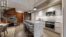 Bright & Spacious Luxury Townhome at Wonder Condos!Fully upgraded with over $250K in designer improvements every-part of this home has been touched and professionally styled by interior designers. Features a custom dry bar with Sub-Zero appliances, Blue Roma quartzite island and bar, built-in Sonos sound system, premium lighting, custom fixtures ( about $25k), Somfy Irismo 45 Wirefree RTS electric curtains, (about $27k), Google Smart thermostats.Enjoy floor-to-ceiling windows, a built-in office with adjustable desk, custom wardrobes, exclusive Newwall wallpaper, and a fully built-out laundry room with storage.Includes 1 underground parking space + locker. GaQ hook up. Condos combine heritage charm with modern luxury, offering a rooftop terrace, gym, co-working lounge,a doggie wash room with bath in the building.and 24-hour concierge.Steps to Queen St E, Jimmie Simpson Park, cafes, and transit.Walk Score 95 | Bike Score 95 (id:27)