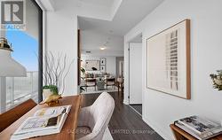 Welcome to this stunning, modern 2+Den condominium offering a highly functional open-concept layout in a newer, well-managed building. Thoughtfully designed for both comfort and style, the unit features two full bathrooms and a spacious den-perfect for a home office, nursery, or guest space. The sleek contemporary kitchen showcases integrated cabinetry and high-end built-in appliances, creating a seamless and sophisticated aesthetic. Floor-to-ceiling windows fill the space with natural light, while the expansive balcony-accessible from both the living room and primary bedroom-offers the perfect setting for relaxing or entertaining. This suite includes parking and a locker for added convenience, along with 24-hour concierge service for peace of mind. Ideally located just steps from Shops at Don Mills, enjoy premier dining, shopping, and everyday essentials right at your doorstep. Walk to schools, the library, parks, trails, and the Don Valley greenbelt. Commuting is effortless with public transit at your door and direct access to Don Mills Station, offering subway connections across the city and convenient routes to Scarborough Town Centre. A short drive brings you to CF Fairview Mall, while quick access to Hwy 401 and the DVP makes getting around the GTA seamless. Surrounded by top-rated schools and everyday conveniences including Metro, McEwan Fine Foods, and Real Canadian Superstore, this vibrant and exceptionally convenient location truly defines urban living at its best. Don't miss this outstanding opportunity! (id:27)