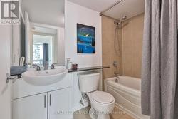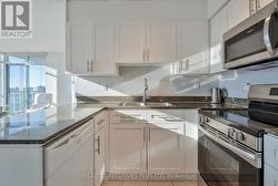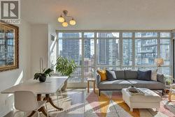 Welcome to this spectacular high-floor corner suite in the heart of downtown Toronto. Framed by floor-to-ceiling windows, the home offers sweeping city views and a thoughtfully designed layout with 2 bedrooms, and 2 4-pc bathrooms, and corner balcony. The open-concept kitchen is bright, with white cabinetry, new stainless range, refrigerator and over the range microwave, functional layout with generous storage, while the large den provides the perfect flexible space for work or study. This owner occupied residence includes 1 owned parking spot and 1 locker, and grants access to an impressive collection of amenities: 24-hour concierge, state of the art fitness center currently being updated, indoor pool with hot tub, sauna, multi sport court for basketball, badminton or volleyball, cinema, billiards room, party room, rooftop garden with BBQ terrace, hair salon, guest suites and visitor parking. With all utilities and even cable TV included in the maintenance fees, this is a true turnkey opportunity. Steps to shops and restaurants, The Well, public transit, CN Tower, Rogers Centre and Scotiabank Arena, Financial and Entertainment Districts, and Harbourfront, this address embodies the best of sophisticated urban living. (id:27)
