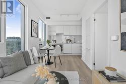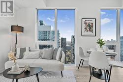 Experience sophisticated urban living in this stunning high-floor two-bedroom, two-bathroom residence at 82 Dalhousie Street. This beautifully designed unit offers a bright and spacious layout with floor-to-ceiling windows that fill the space with natural light and provide impressive city views. The open-concept living and dining area flows seamlessly into a modern kitchen featuring sleek cabinetry, integrated appliances, and ample counter space, making it perfect for both entertaining and everyday living. Both bedrooms are generously sized, with the primary bedroom featuring a stylish ensuite bathroom for added comfort and privacy. The second bedroom is equally versatile and can serve as a guest room, home office, or additional living space. Contemporary finishes, elegant flooring, and thoughtful details throughout create a warm and inviting atmosphere. Located in the heart of downtown Toronto, this residence offers unmatched convenience with easy access to transit, Toronto Metropolitan University, the Eaton Centre, restaurants, cafes, and entertainment. Enjoy an elevated lifestyle surrounded by modern amenities and the vibrant energy of the city. (id:27)