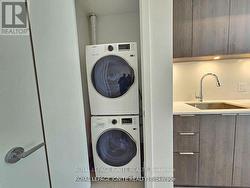 Experience luxury living in this 1-year-new 1 bedroom + den, 1 bath condo by Great Gulf, located in the heart of Toronto's Entertainment District. Featuring soaring 12-ft ceilings, floor-to-ceiling windows with a clear view, and stylish laminate flooring throughout, this unit offers an open-concept layout with a modern kitchen, quartz countertops, and backsplash. The den is perfect for a home office, and the suite includes convenient in-suite laundry. Enjoy access to premium amenities including a fitness studio, yoga studio, communal workspace, and podium terrace. Steps to shopping, dining, and transit-urban living at its finest. (id:7525)
