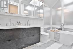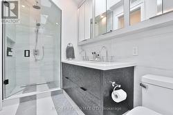 A significant opportunity in Davisville, this meticulously rebuilt 4+1 bedroom, 4-bath home was reimagined by award-winning interior designer Ali Budd.Offering over 3,000 square feet across three fully finished levels, every architectural and design detail has been thoughtfully considered. The main floor features 9' ceilings, herringbone wood floors, dining room wainscotting, and a striking glass-and-steel partition delineating the two spaces. Custom millwork throughout provides ample storage. Kitchen with Italian Laminam surfaces and oversized waterfall island which easily sits five is the heart of the home. Blending modern comfort with traditional details, all tiled surfaces feature radiant in-floor heat. The kitchen and dining room open to the south facing yard, large deck with separate lounge and dining spaces, deep garden, hot tub, and ample play space.With over 9 foot ceilings, the skylit second floor is flooded with natural light and holds 4 bedrooms. South-facing principal suite has lush treetop views when in full bloom, vaulted ceiling rising to over 14', built-vanity and storage, walk-in closet, and 5-piece ensuite with double sinks, glass shower, and soaker tub. Three additional bedrooms, each with built-in reading nooks and custom closets share a whimsical 4-piece bath with separate tub and shower.Lower level offers over 7' ceilings, a den/5th bedroom with Murphy bed, 3-piece bath with steam shower, recreation and play areas with built-ins, and heated flooring throughout. Smart lighting, integrated climate control, and a thoughtfully designed six-zone Sonos audio system create an environment where technology enhances the living experience.Rare two-car parking is accessed via laneway. The laneway is a tight-knit community which adds to the home's appeal. Located steps to the best of Bayview and within the Maurice Cody school district.Plans and permits for a future laneway house by Izen Architecture are included. (id:27)