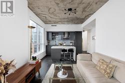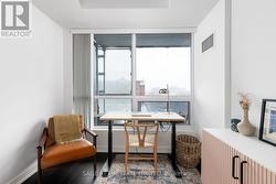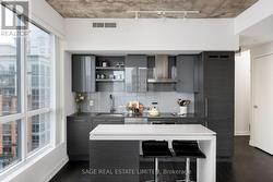 Bright. Airy. Effortlessly cool. This north east corner 2 bedroom, 2 bathroom suite blends modern design with a distinct loft aesthetic and exceptional everyday livability. Featuring 9 foot ceilings, exposed concrete, and expansive windows, the space is flooded with natural light and framed by leafy residential views over Queen West, lush and green in the summer, with a subtle skyline in the distance. The open-concept layout is anchored by a sleek kitchen with an island and seating, perfect for morning coffee, casual dinners, or hosting friends before a night out. Thoughtfully designed for everyday ease, the suite offers a functional split-bedroom layout and upgraded closet built-ins that add both style and smart storage. Set within DNA3, one of the area's most desirable and well-managed buildings, residents enjoy 24 hour concierge and an impressive suite of amenities including a fully equipped gym, yoga studio, theatre room, party room, and beautifully designed outdoor lounge areas. Pet friendly and community oriented, the building has become a standout choice for those who value design, convenience, and connection. Located directly on the King streetcar line, access to the Financial and Entertainment Districts is effortless, while Queen West, Ossington, Trinity Bellwoods, Stanley Park, and Garrison Common are all within walking distance. A grocery store right in the building adds everyday convenience to an already exceptional lifestyle. With a 96 Walk Score and 91 Transit Score, this is urban living without compromise. For those who want downtown energy, green space for weekend coffee walks, and a refined space to come home to, this is the one. (id:27)