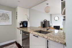 Anything but ordinary - this one feels like home. With nearly 700 sq ft, an ultra wide layout, and a large sun filled den, this King and Bathurst suite is the perfect step into ownership without sacrificing space or style. Whether you're climbing the career ladder or building your empire, this is your sanctuary in the heart of it all. Love to entertain? Host post pilates brunch in your upgraded kitchen, or skip the prep and hit a class in the building before friends swing by for cocktails en route to King West. Prefer a night in? The oversized living room and rare wood-burning fireplace set the scene for cozy evenings and effortless hosting. The bright, spacious den works beautifully as a proper home office or chic dining space. The primary bedroom easily fits a king bed and your full wardrobe (yes, really). Add in large closets, an ensuite locker, laminate flooring, smooth ceilings, a modern kitchen, and a new heat pump (2024), and you've got a move in ready win. Bonus: a clean, oversized laundry room just down the hall shared with only a handful of neighbours. Enjoy top tier amenities? Indoor and outdoor pools, full gym, concierge, courtyard, games room, theatre, squash courts, guest suites, visitor parking and more. Step outside to world class dining, nightlife, wellness spots, shops, transit, and the future Ontario Line. Work hard. Play hard. Come home to something special. Offers anytime!