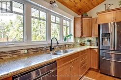 Welcome to 1898 Lakehurst Road in Buckhorn - a beautifully restored and extensively renovated home, originally the Lockmaster's House, set on just under an acre of land with manicured lawns, gardens, and ultimate privacy. This 4-bedroom, 2.5-bath home features an open-concept main floor with pine tongue-and-groove ceilings, a spacious layout, and convenient main floor laundry. The main floor primary suite offers a walkout to the backyard, while the second level includes two additional bedrooms. The third level features a spacious fourth bedroom, and the loft above the garage provides a versatile bonus space-perfect for a home office, additional family room, or fifth bedroom. An oversized double-car garage provides plenty of room for vehicles and hobbies, complete with a large workshop area at the back, ideal for projects or extra storage. Renovated top to bottom in 2005, the home beautifully blends heritage charm with modern comfort. Step outside to a private backyard oasis featuring a heated in-ground pool, Trex decking, covered patio, low maintenance maibec siding and beautifully landscaped surroundings-perfect for entertaining or relaxing in nature. Set well back from the road, this home offers peace and seclusion, yet is just a short walk to downtown Buckhorn, the locks, public beach, community centre, outdoor rink, and all local amenities-only 25 minutes to Peterborough. Recent updates include a high-efficiency propane furnace (installed August 2025) with a 10-year warranty. MPAC has the property noted as a 2.5 storey home, however, now, renovations, the property shows as a bungalow with multi level addition. (id:27)