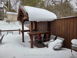 Come and check out this well-maintained raised bungalow conveniently located beside the McCamon Ave parkette and close to downtown Tweed. The main level has hardwood floors throughout, a primary bedroom with full 4-piece ensuite and bay window, a main bathroom with tiled shower, and open concept living/dining area with a gas fireplace. The kitchen has a gas range, pantry, breakfast nook, and a walkout to the large rear deck with a covered cooking area, dedicated gas line for the BBQ and a privacy fence, made for entertaining. The lower level has a good-sized family room with fireplace (not working), a laundry room with 2-piece bathroom and a rough-in for a shower or bathtub and a double garage which has been converted to extra living space by the addition of a wall to replace the garage door. The 16' overhead door is still in place making it very easy to change it back to the original garage if desired. The double chair lifts in the entryway will be removed prior to closing. (id:27)