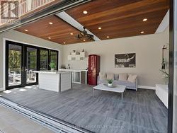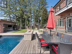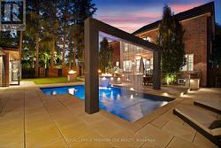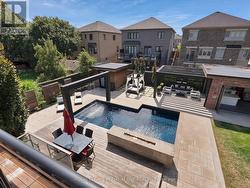 Resort-Style Luxury in the Heart of Kleinburg. Welcome to this custom-built Kleinburg residence that effortlessly combines timeless curb appeal with sleek, modern finishes inside. Step through the doors and experience a home that was designed for both family living and grand entertaining. The crown jewel of this property is the million-dollar backyard, rivaling resorts you'd expect to find in the Hollywood Hills. Dive into the sparkling pool with cascading waterfalls, or let the glow of multiple fire bowls set the scene for unforgettable evenings. Relax in the oversized cabana, enjoy shade under the pergola, and take advantage of the convenient outdoor bathroom. A large deck, perfect for grilling and al fresco dining, overlooks this breathtaking oasis. Inside, every detail speaks of luxury. The home features 4 spacious bedrooms, each with its own ensuite, offering privacy and comfort for the whole family. The primary retreat includes a private balcony where you can sip your morning coffee while overlooking your personal resort. Upstairs, a versatile loft awaits perfect for cozy movie nights, gaming, or a kids hangout space. Beyond the home, you'll love the lifestyle Kleinburg Village offers. Stroll through charming boutiques, enjoy fine dining, art galleries, and the renowned McMichael Canadian Art Collection. Families will appreciate the strong community feel, excellent schools, and easy access to parks and trails. This is more than just a home its a statement. A rare chance to own a private resort in one of Kleinburg's most desirable communities. (id:7525)