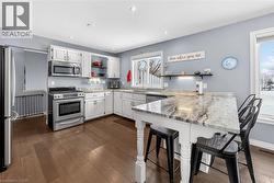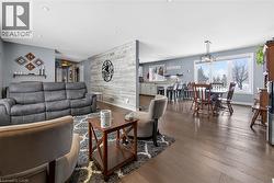 Immaculate raised brick bungalow in the heart of Wainfleet, just a short walk to schools, library, playgrounds, sports fields and the arena. Set on just over 1 acre with no rear neighbours, this beautifully maintained home offers privacy, open views and incredible sunsets. The inviting main floor features an open concept layout with a bright kitchen and dining area, spacious living room, and three generous bedrooms including a primary with walk-in closet. Wide plank hardwood floors add warmth throughout. The finished lower level offers large windows, a spacious rec room with gas fireplace, an additional large bedroom, bonus room and 3-piece shower. Ideal potential for an in-law suite setup. Exterior highlights include a private covered porch overlooking the expansive backyard, 15x24 pool with deck (2022), and chainlink fence (2021). Major updates provide peace of mind: furnace (2021), water heater (2024), full home filtration system (2025), three pumps replaced (2023), rear windows (2023), extended kitchen island with granite counters (2022), and Generac generator maintenance (2024). Attached double car garage completes this move-in ready property. Meticulously cared for inside and out. (id:27)