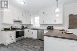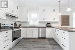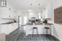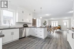 This brand new all-brick raised bungalow offers over 3,200 sq ft of finished living space, combining modern design, quality finishes, and a great layout ideal for families or multi-generational living. The main level features approximately 1,645 sq ft with 9-foot ceilings, creating a bright and open atmosphere, while the fully finished lower level adds an additional 1,565 sq ft of living space.Set on a generous lot measuring 57.45 ft by 133.13 ft, this home includes 3 spacious bedrooms on the main floor and 2 additional bedrooms downstairs, along with 2 full bathrooms on the main level and a convenient powder room. A main floor laundry room is perfect for man floor living.The classic kitchen is a standout, showcasing brand new stainless steel appliances, upgraded shaker-style cabinetry, double stacked upper cabinets with crown moulding to the ceiling, deep fridge uppers, a large pantry, and practical pot and pan drawers. Quartz countertops with undermount sinks carry through the kitchen and bathrooms for a cohesive, upscale finish. The primary ensuite offers a double vanity and a glass-enclosed shower.Outside, enjoy both a covered front concrete porch and a covered rear deck, perfect for relaxing or entertaining in any season. The exterior is complete with a fully sodded yard and paved driveway, plus a spacious 2-car garage.Additional modern features include hot water on demand, central air conditioning, rough-in central vacuum, HRV system, and a cellar for extra storage.Located on the east end of Wasaga Beach near Marlwood Golf Course, this home offers easy access to Beach 1, shopping, and everyday amenities. (id:27)