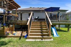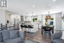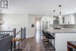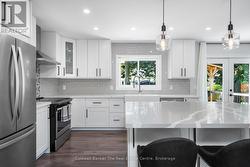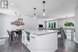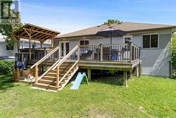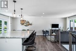 Welcome to this fully renovated raised bungalow nestled in a mature, family-friendly area of Wasaga Beach. Surrounded by tall, established trees and set in a quiet, convenient location, this home offers the perfect balance of comfort, style, and lifestyle amenities. The property features three well-appointed bedrooms on the main floor and a bright, open-concept layout designed for modern living. The heart of the home is the newly renovated kitchen, showcasing a large quartz island, updated cabinetry, and contemporary finishes-ideal for cooking, gathering, and entertaining. This space flows effortlessly into the main living and dining areas, creating a warm and inviting environment filled with natural light. This home has been thoughtfully updated throughout, including new electrical completed in 2019 and new windows installed in 2021 and 2022, providing improved efficiency and peace of mind. New Garage Door 2019 with R16. New shingled roof 2016, Updated Furnace 2014. The finished basement extends your living space with a cozy fireplace, perfect for relaxing evenings or hosting guests. There's also a generous workout area, providing flexibility for fitness, hobbies, or additional family space. Outside a large backyard deck that's perfect for BBQs and outdoor dining, along with a practical storage shed for tools and seasonal items. Home is located within walking distance to parks, beaches, shops and restaurants, perfect location for families, retirees and investors. (id:27)
