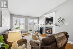 Welcome to country Meadows a 55+ community with golf course in-ground pool and clubhouse! Gorgeous end unit on premium location backing onto pond has numerous upgrades and extras. Open concept floor plan with vaulted ceiling and gas fireplace with custom surround and media centre, white kitchen with black hardware, backsplash, crown moulding, valance and under counter lighting, newer upgraded appliances, gas stove, and high-end LG fridge with glass panel. Primary bedroom with walk-in closet and ensuite with walk-in shower. Spacious second bedroom next to 4-piece bath, main floor laundry and California shutters. Storage space under entire house for loads of storage. Fees for a new buyer including lease and property taxes. Land Lease $800 Site $40.57, Home $145.69 Total due on the 1st of each month $986.26. Home is pet-free, smoke-free and meticulously maintained.. just move in! (id:27)
